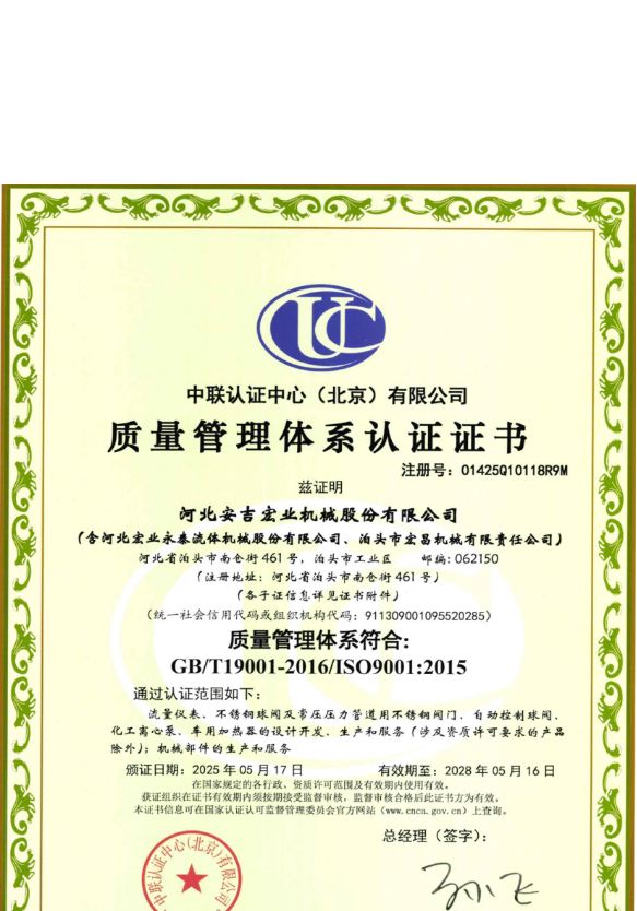 河北宏業(yè)永泰流體機(jī)械股份有限公司(原泊頭儀表總廠),生產(chǎn)流量?jī)x表產(chǎn)品有三十多年的歷史。參加了節(jié)流裝置國(guó)家標(biāo)準(zhǔn)GB/T2624-1981的起草工作。公司占地12萬平方米,注冊(cè)資金3500萬元。主要產(chǎn)品有節(jié)流裝置、儀器儀表、各類不銹鋼閥門、各種化工離心泵。公司取得了ISO9001:2015質(zhì)量體系認(rèn)證、挪威船級(jí)社CE認(rèn)證、出口產(chǎn)品Emark認(rèn)證、特種設(shè)備制造許可證等。同時(shí)河北宏業(yè)永泰還是中石化物資供應(yīng)商網(wǎng)絡(luò)成員,取得了中石油、中海油物資供應(yīng)商準(zhǔn)入證,是中國(guó)神華集團(tuán)、華電集團(tuán)、大唐集團(tuán)、中廣核等公司合格供應(yīng)商。產(chǎn)品出口日本、阿爾及利亞等國(guó)家。